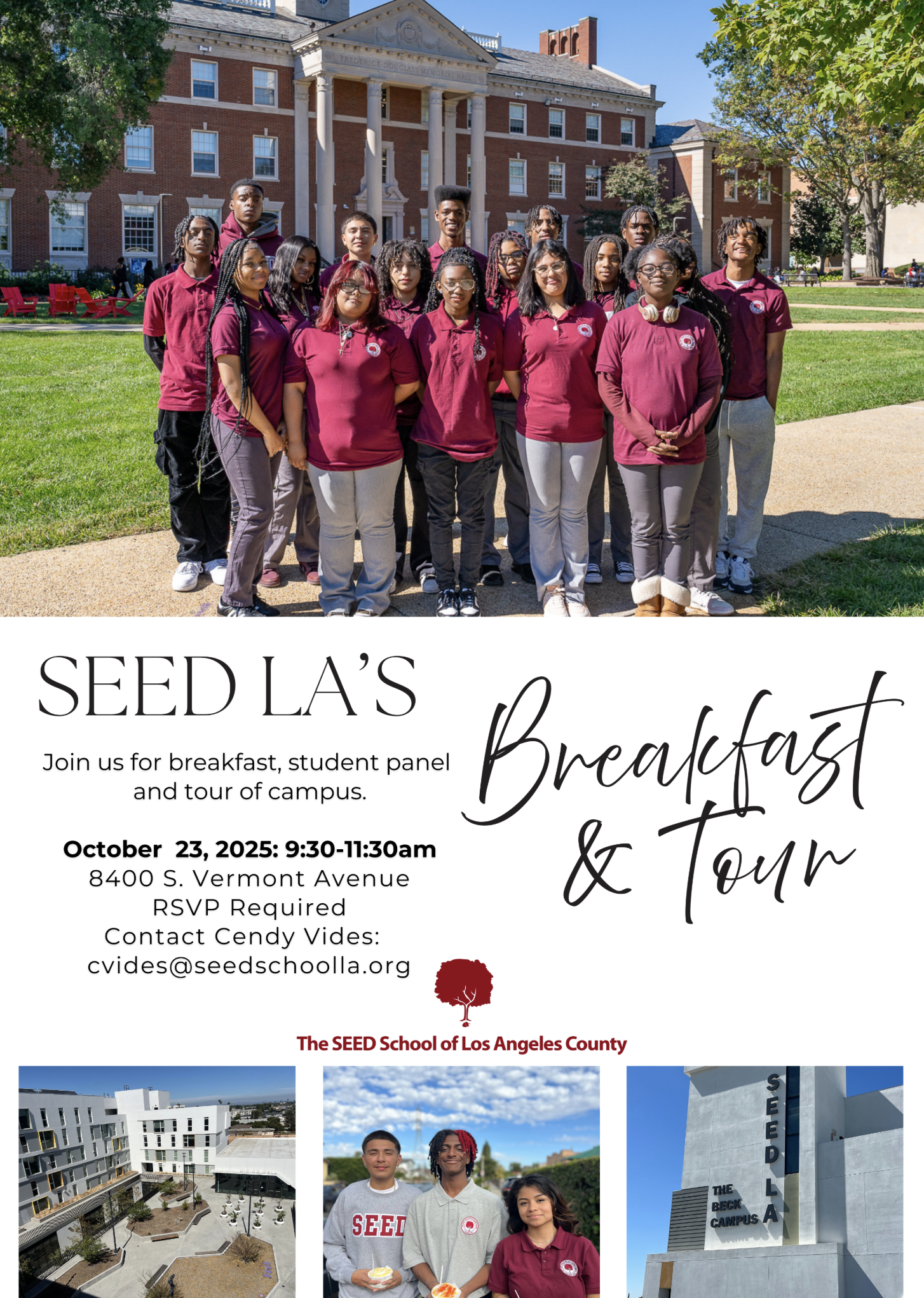Join SEED LA on October 23, for breakfast, student panel and tour of the campus! RSVP by October 21st at 5 PM.