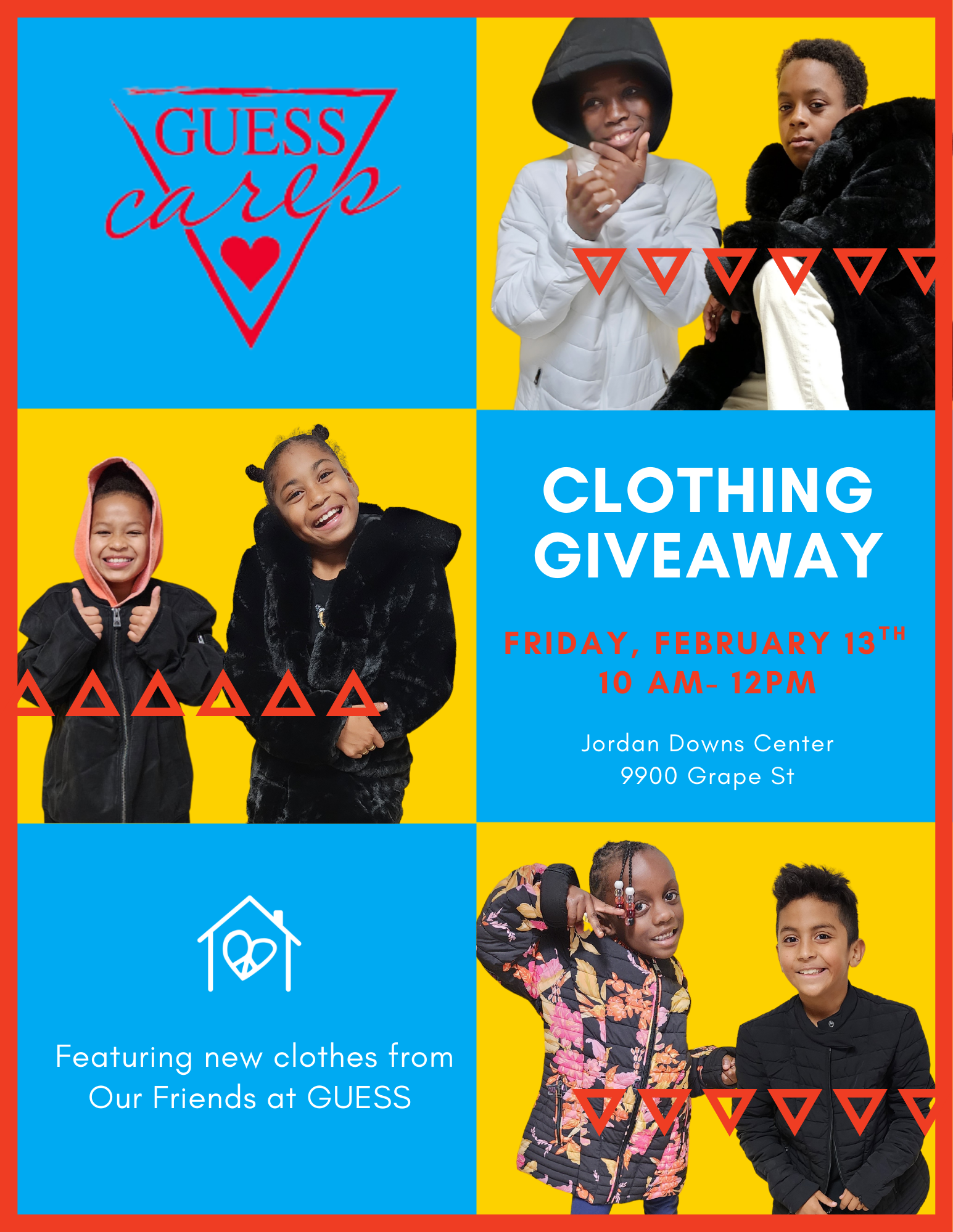 Guess Cares Clothing Giveaway Friday, February 13, 2026 10:00 AM 12:00 PM Jordan Downs Center 9900 Grape Street Los Angeles, CA, 90002 United States (map) Google Calendar ICS